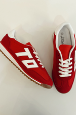 Get ready to rock your outfit with the Toto Sneaker! Its cute and lightweight design will have you feeling confident all day long. Plus, the comfy fit and perfect razorback red color make it a must-have for any gameday!
