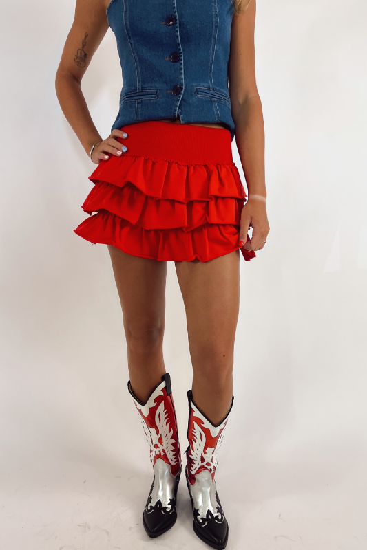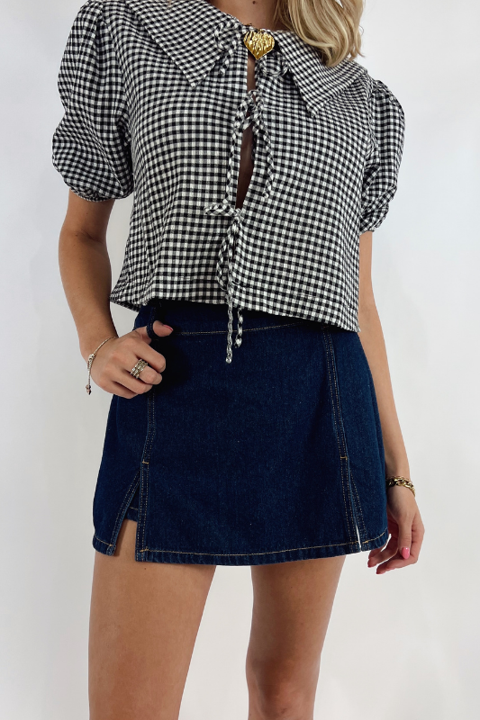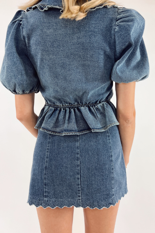 Reagan Puff Hem Denim Skirt