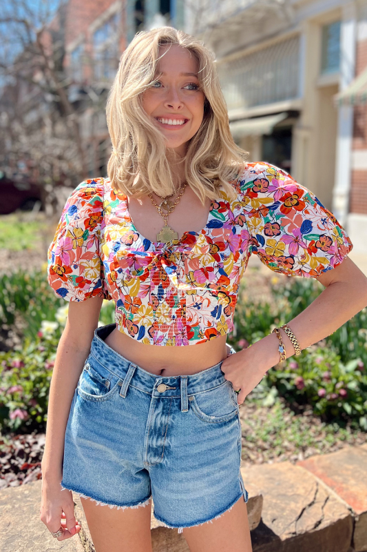 Experience a perfect day in our cute floral print top! This cropped smocked top features puff sleeves for a fun and stylish look. Plus, it runs true to size for a perfect fit. Enjoy the benefits of comfort and style with our A Perfect Day Floral Print Top.