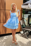 This baby blue Paisley Pleated Mini Dress features playful tie straps that add a charming touch to its breezy silhouette. Perfect for sunny days and casual outings, its lightweight fabric and flattering pleats keep you comfortable and stylish all day long. Embrace a fun, flirty vibe with this easy-to-wear dress that’s as cute as it is carefree.