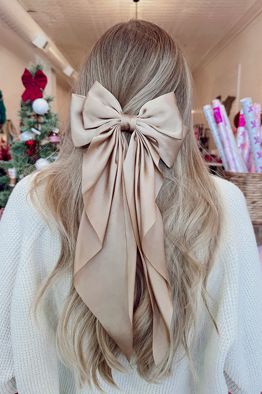 Add a touch of fun and elegance to your hair with our Satin Bow Clip in Gold.